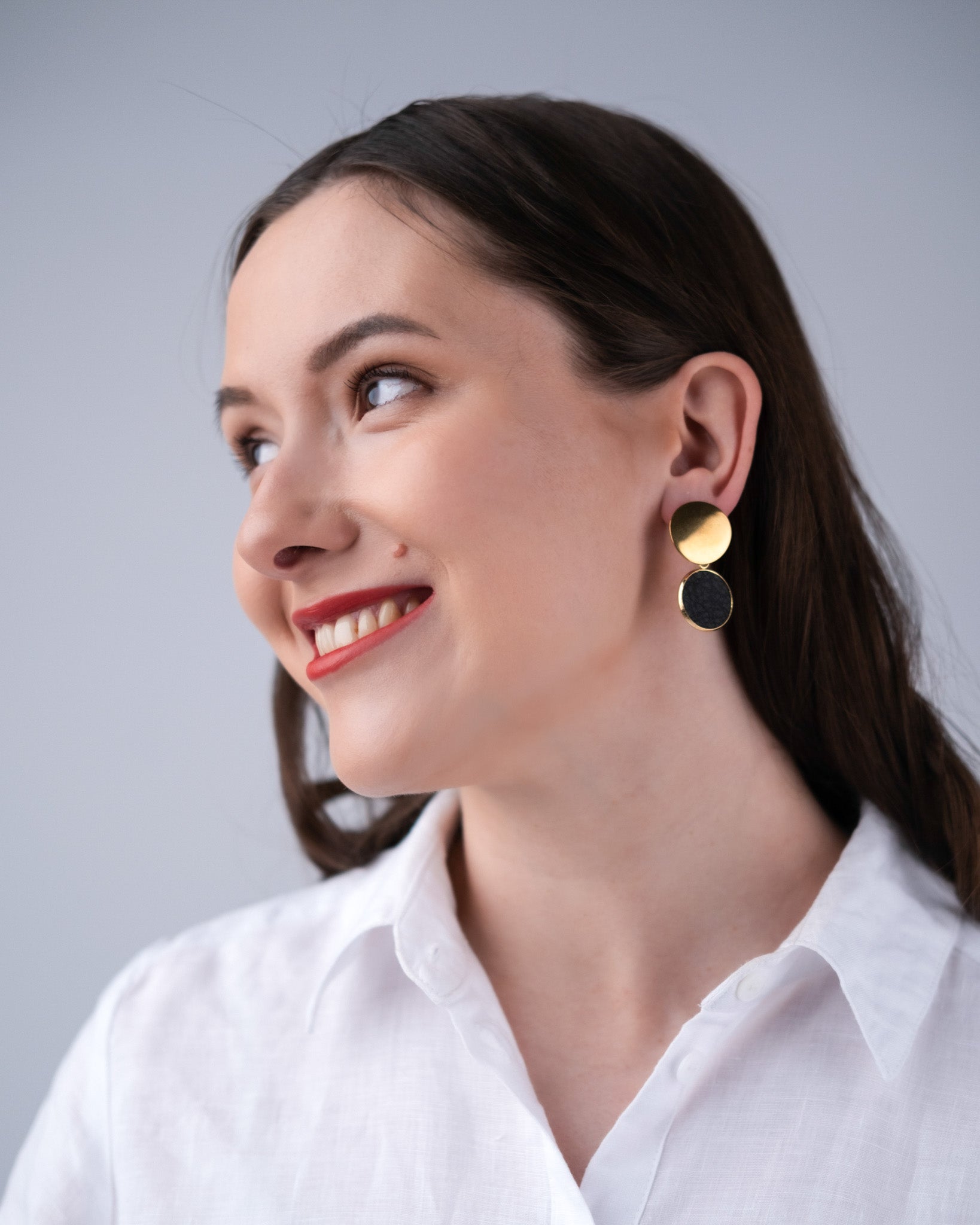 Käytämme kasviparkittua poronnahkaa, joka on asusteteollisuuden ylijäämää. Korvakorut ovat valmistettu käsityönä Suomessa.