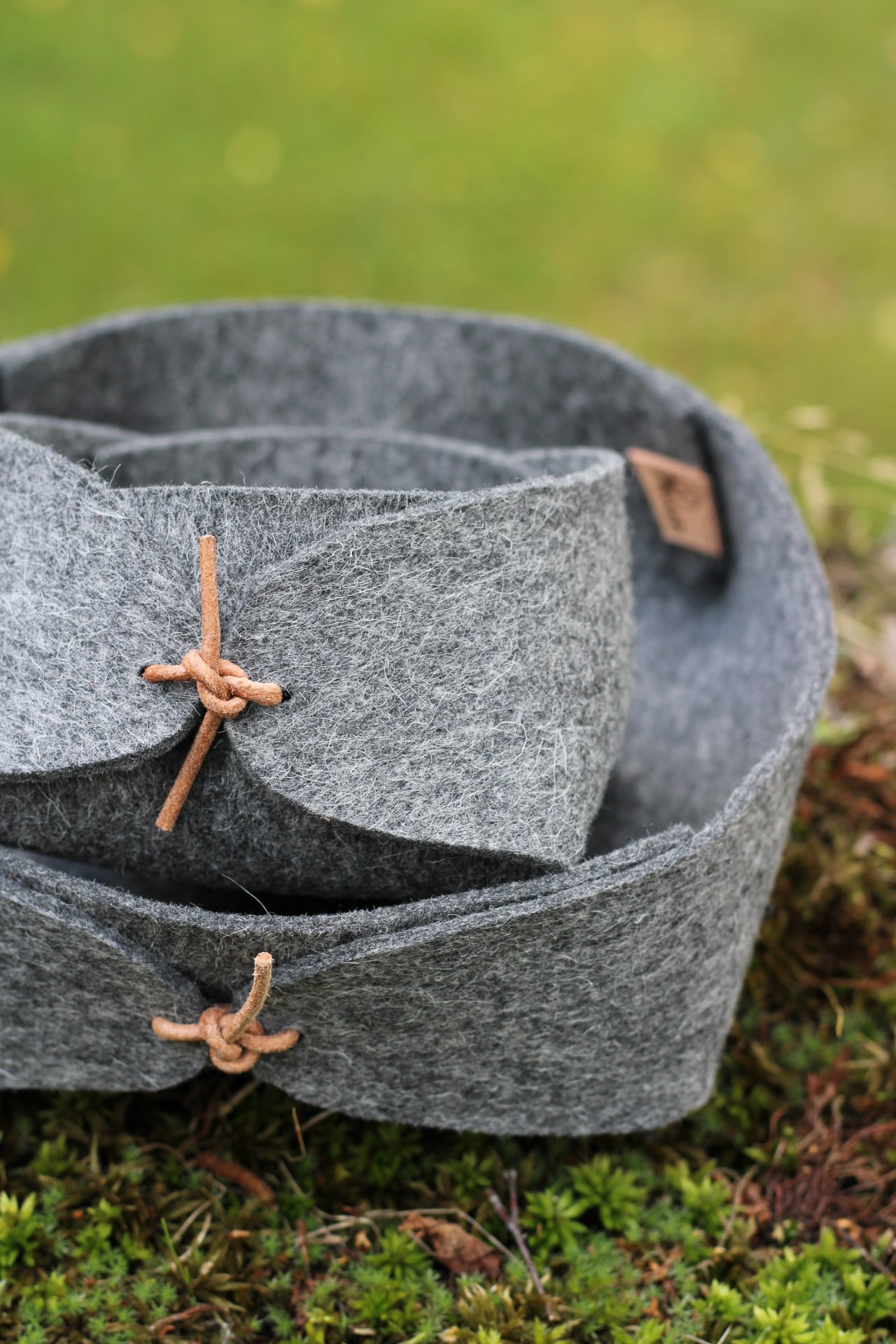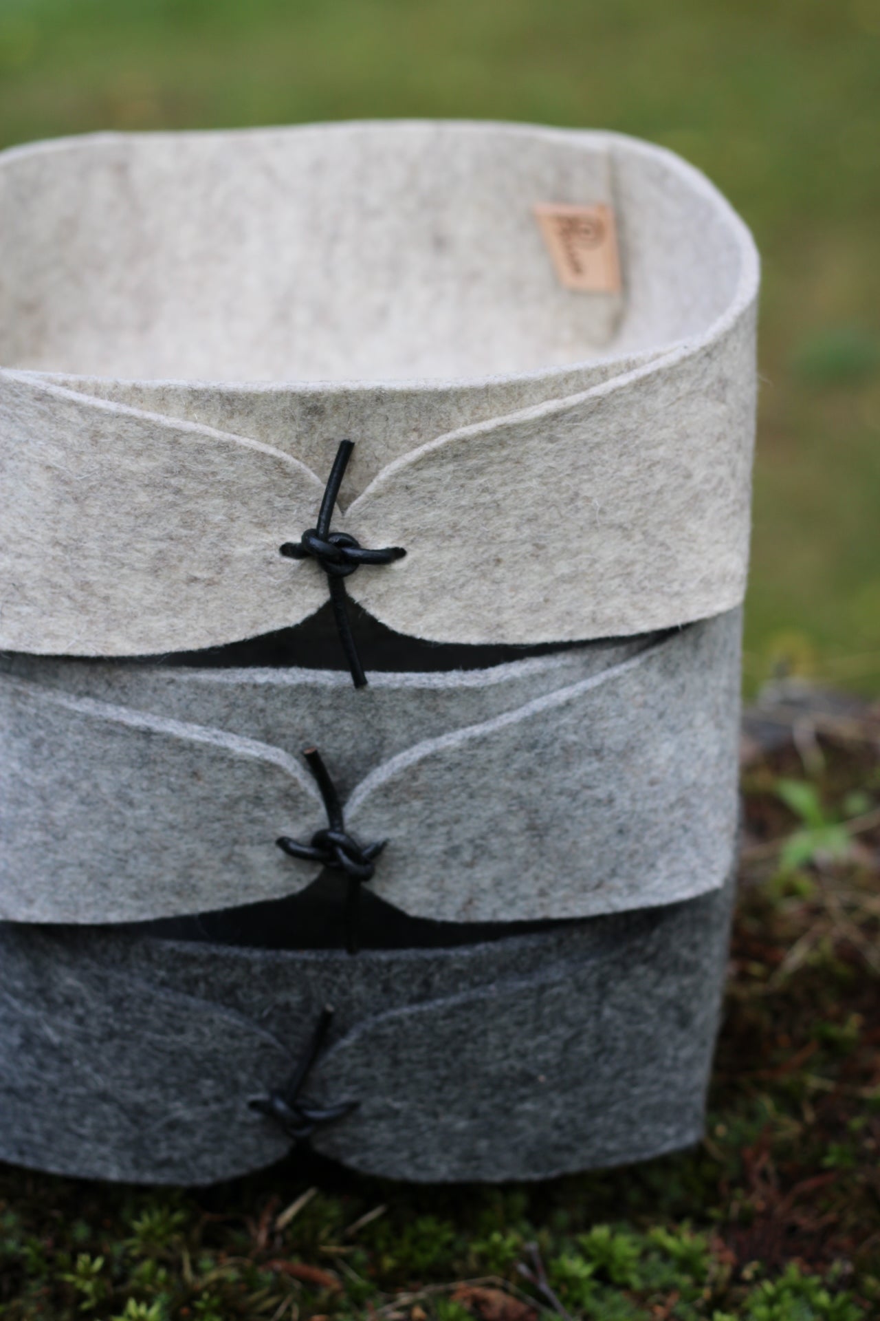 PauseDesignin villahuopakori on tyylikäs ja monikäyttöinen säilytysratkaisu, joka tuo luonnonmateriaalien rauhallisen estetiikan osaksi kotiasi. Kori on valmistettu laadukkaasta villahuovasta ja viimeistelty aidolla nahkaisella nyörillä, joka tuo tuotteeseen hienostuneen ja luonnonläheisen yksityiskohdan.