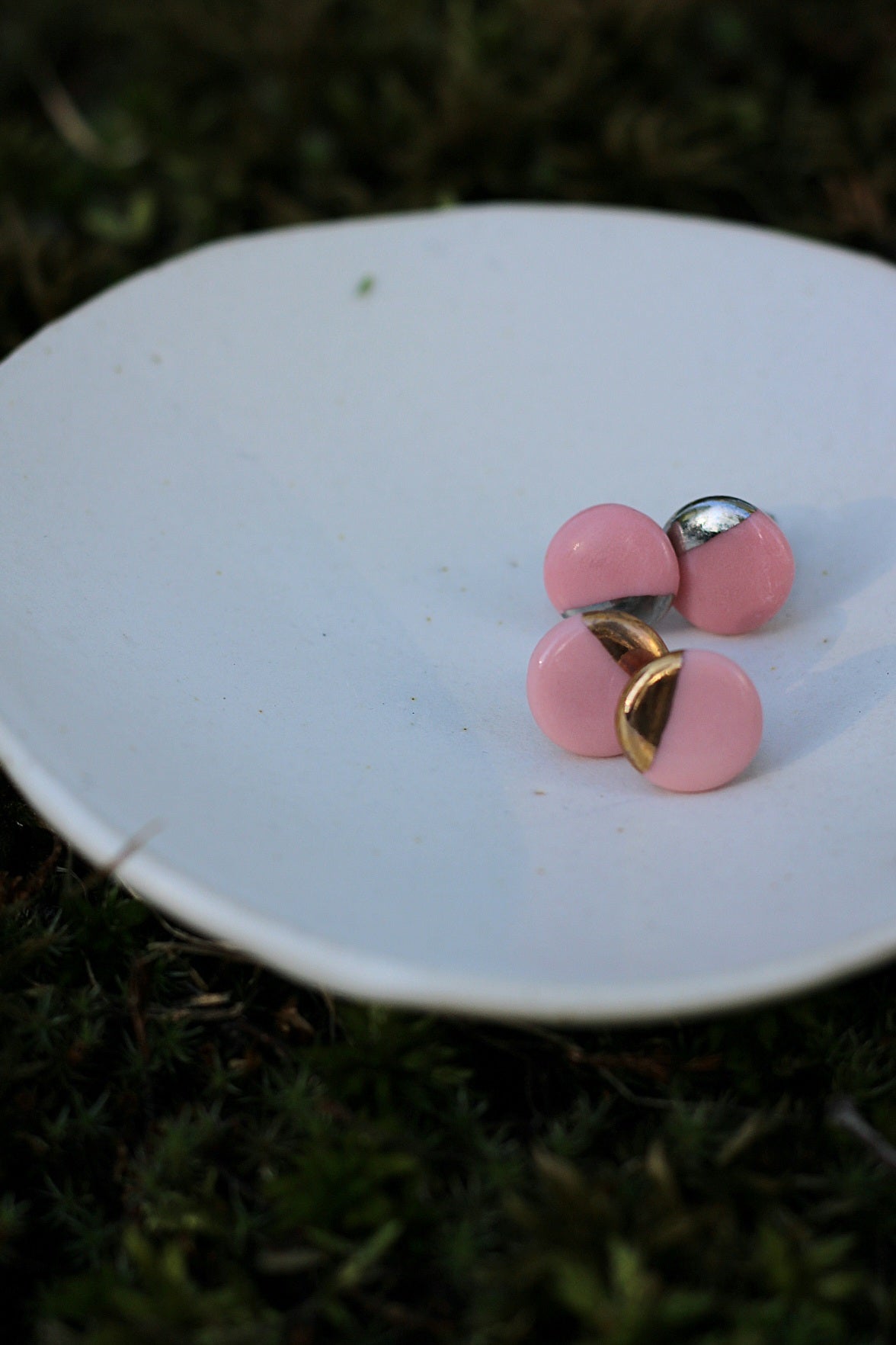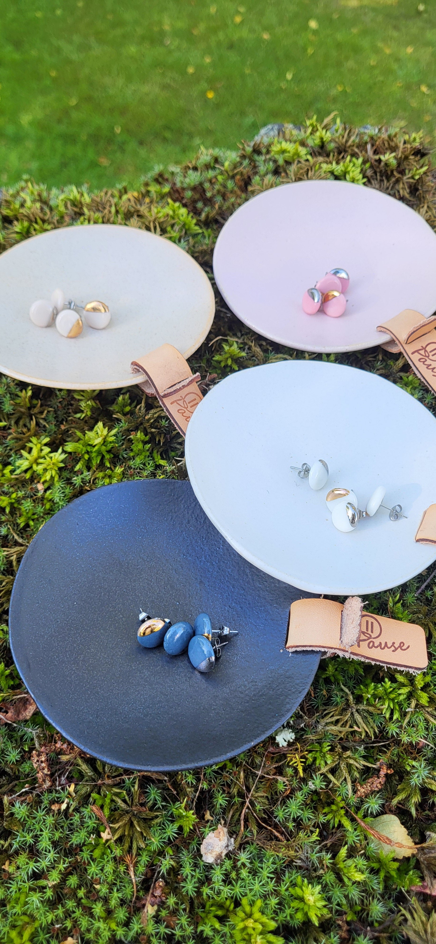 Uniikit nappikorut on valmistettu posliinista. Pinnassa on käsinmaalattu lysterikoriste, joka on joko platinaa tai 14K kultaa. Korutappi on ruostumatonta terästä.