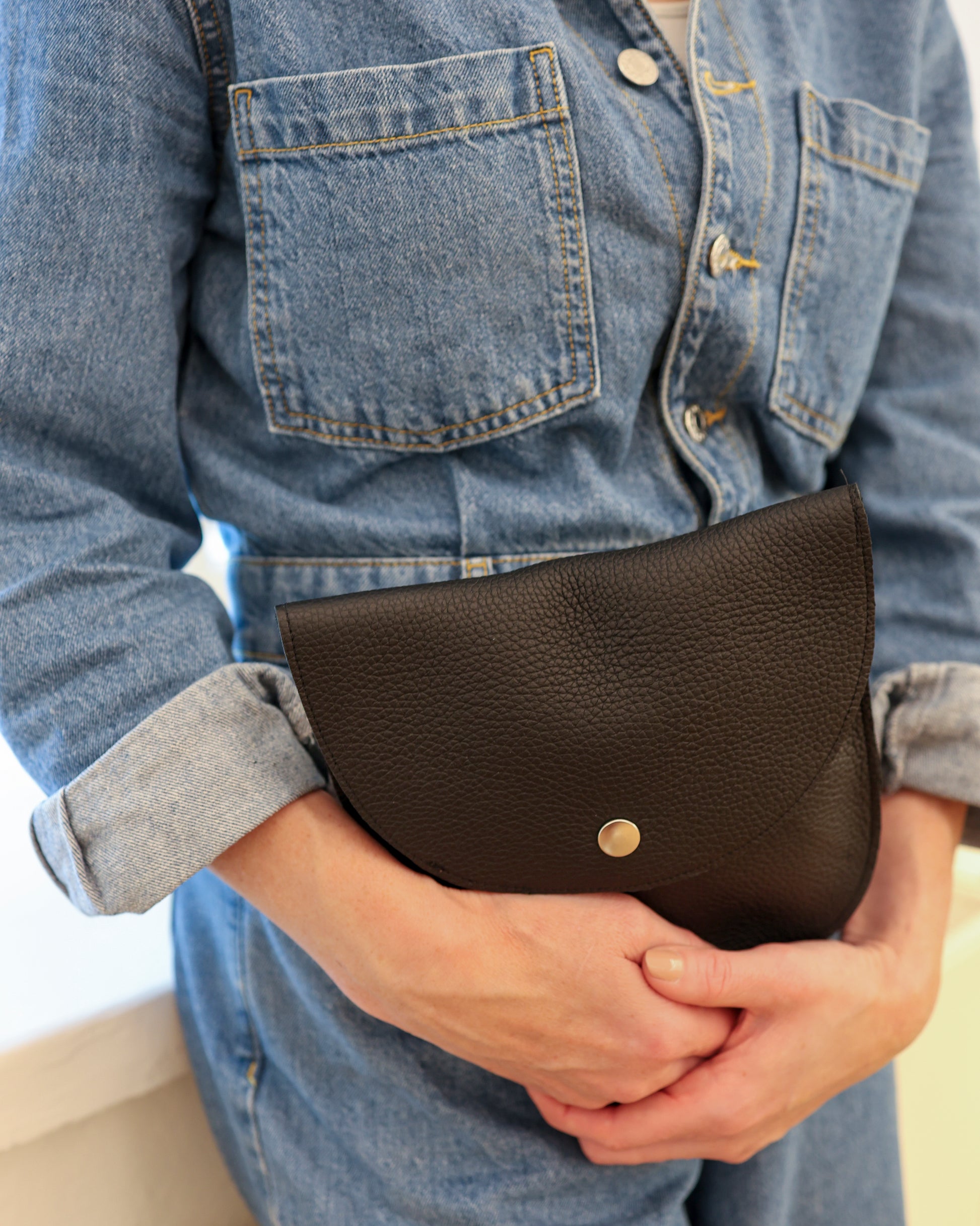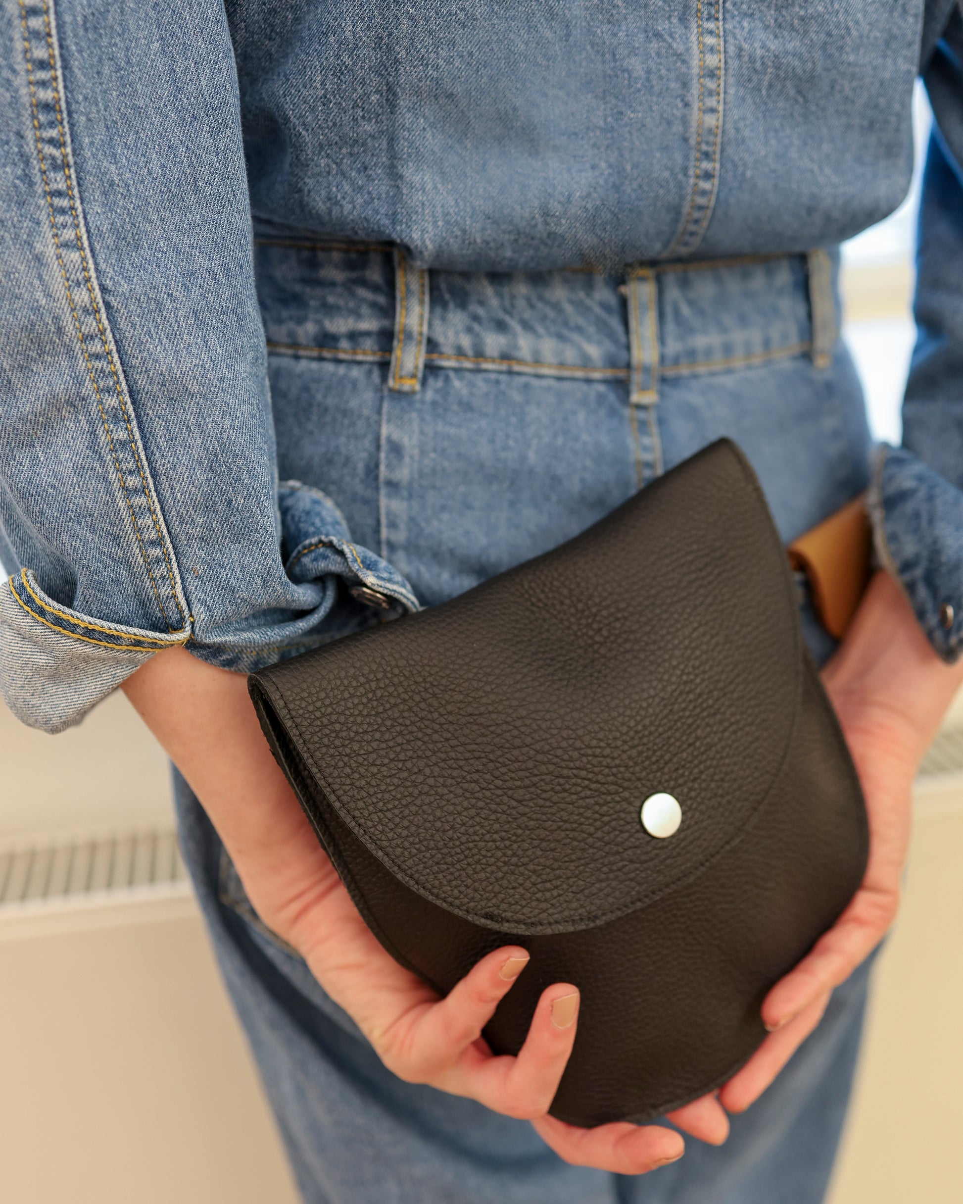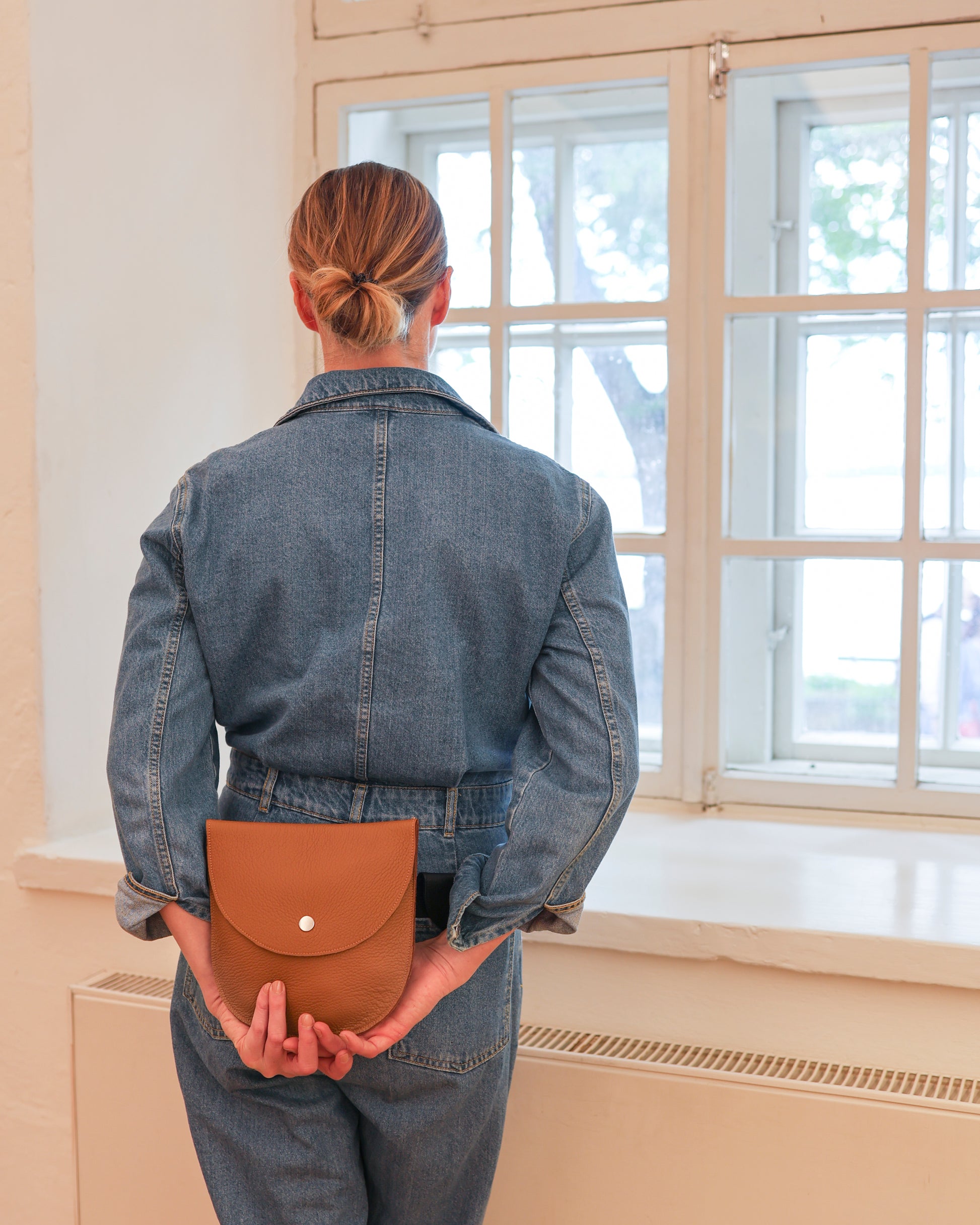 PauseDesignin nahkalaukku on valmistettu suomalaisesta hirvennahasta – poikkeuksellisen pehmeästä, kestävästä ja kauniista luonnonmateriaalista. Kompaktin kokonsa ansiosta laukku sopii täydellisesti tärkeimpien tavaroiden, kuten puhelimen, korttien tai avainten kuljettamiseen tyylikkäästi ja huomaamattomasti.