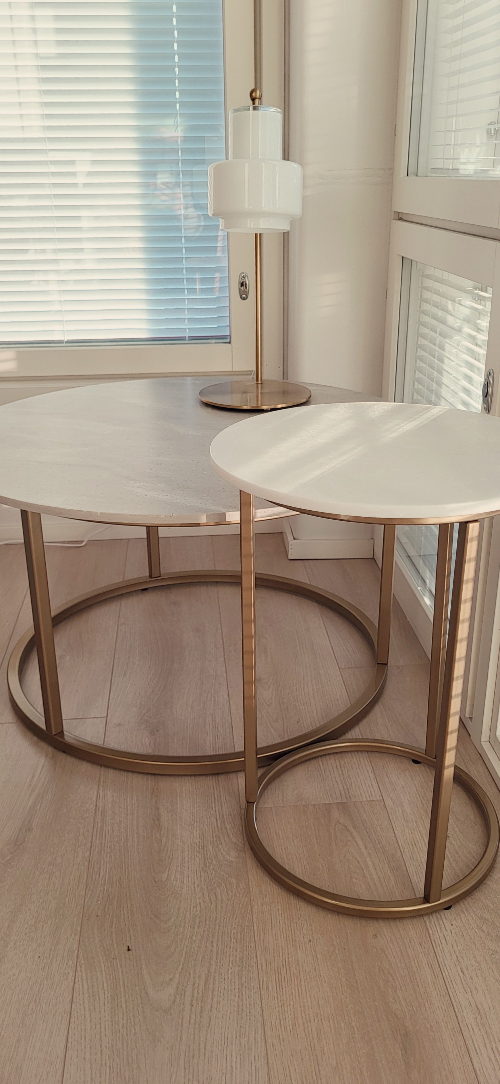 Siro pöytä joka on helppo siirtää tarpeen mukaan – täydellinen esimerkiksi nojatuolin viereen, eteiseen, yöpöydäksi tai näyttäväksi alustaksi kasveille ja koriste-esineille. Yhdistettävissä myös suuremman pöydän kanssa kauniiksi pariksi.