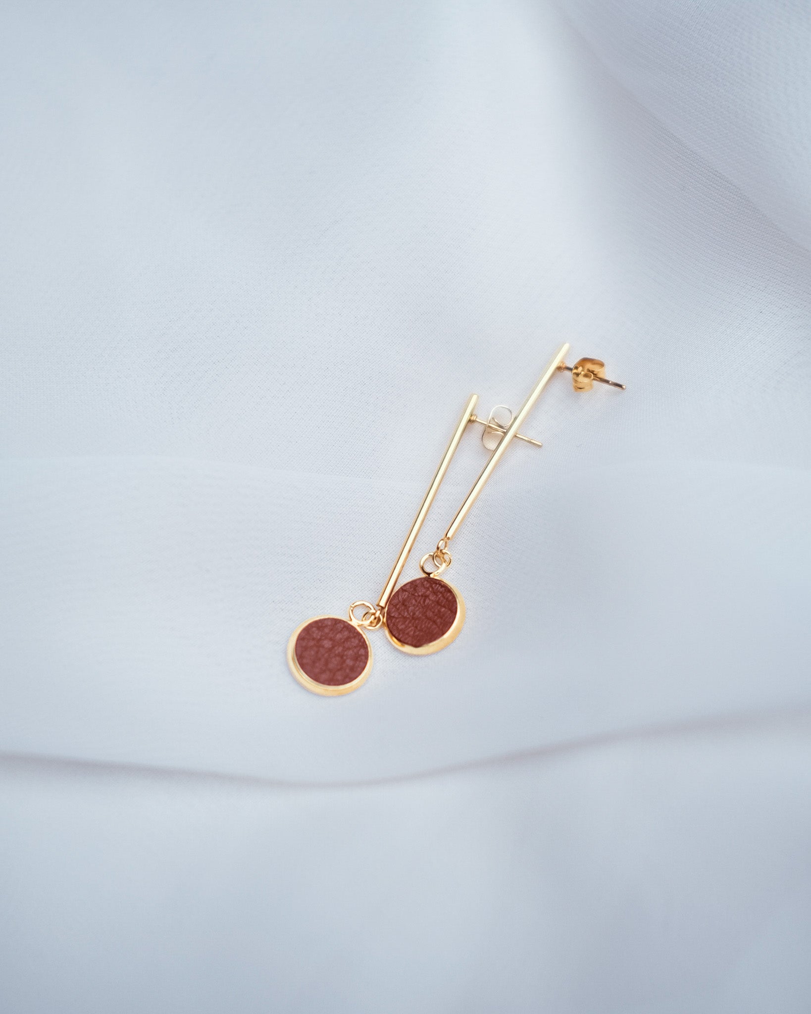 Käytämme kasviparkittua poronnahkaa, joka on asusteteollisuuden ylijäämää. Korvakorut ovat valmistettu käsityönä Suomessa.