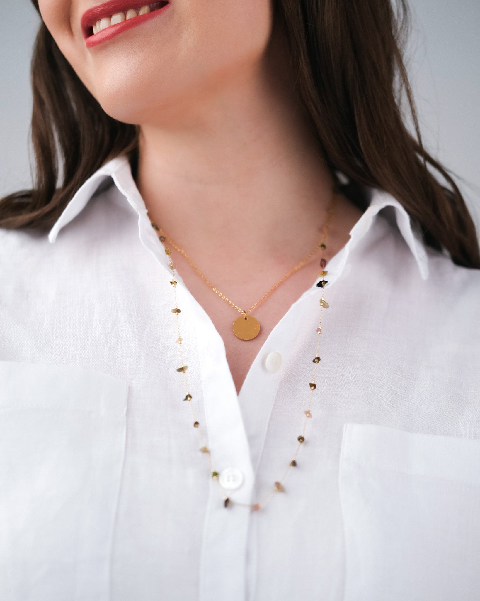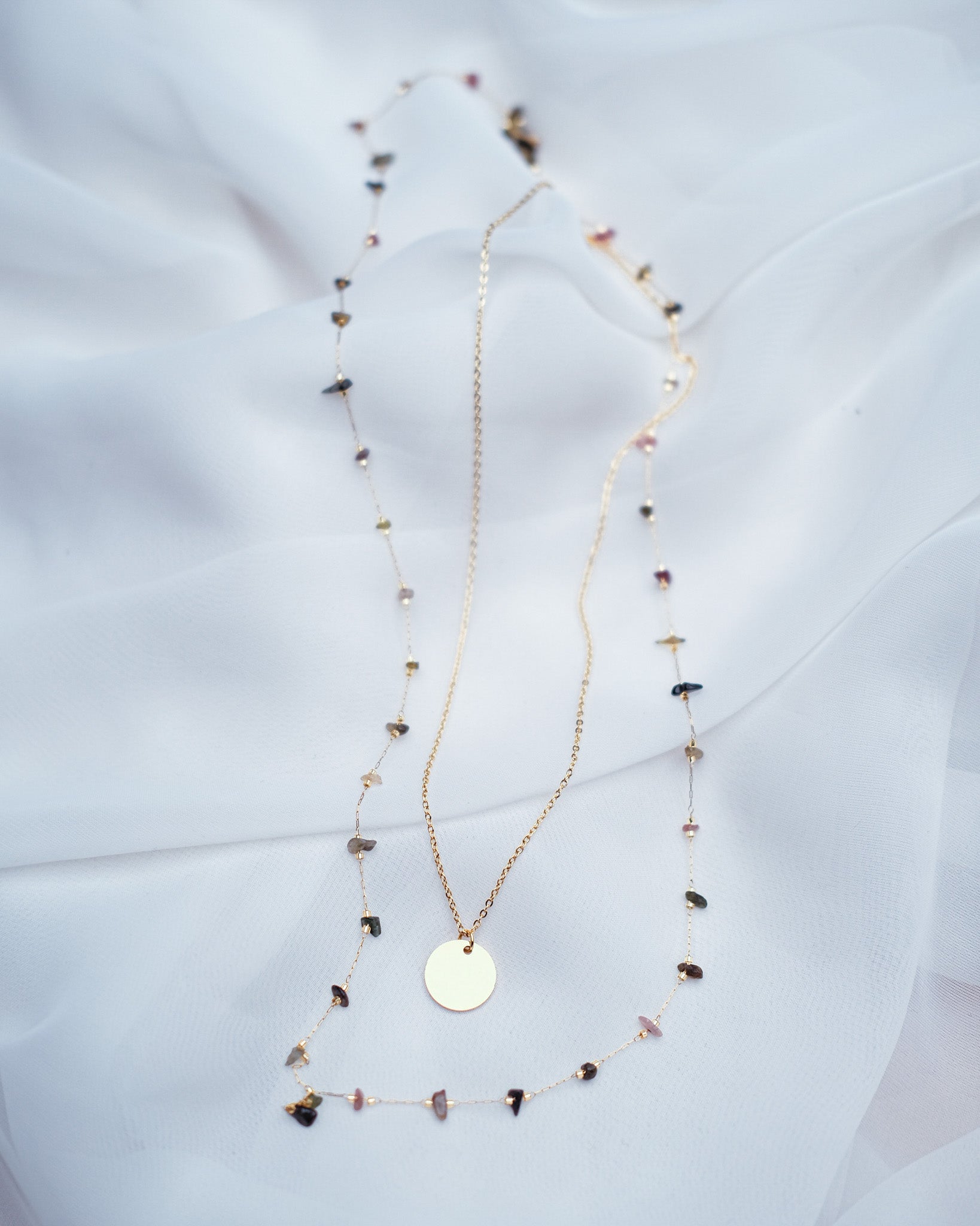 Kaksi kaulakorua, joita voit käyttää yhdessä tai erikseen.
